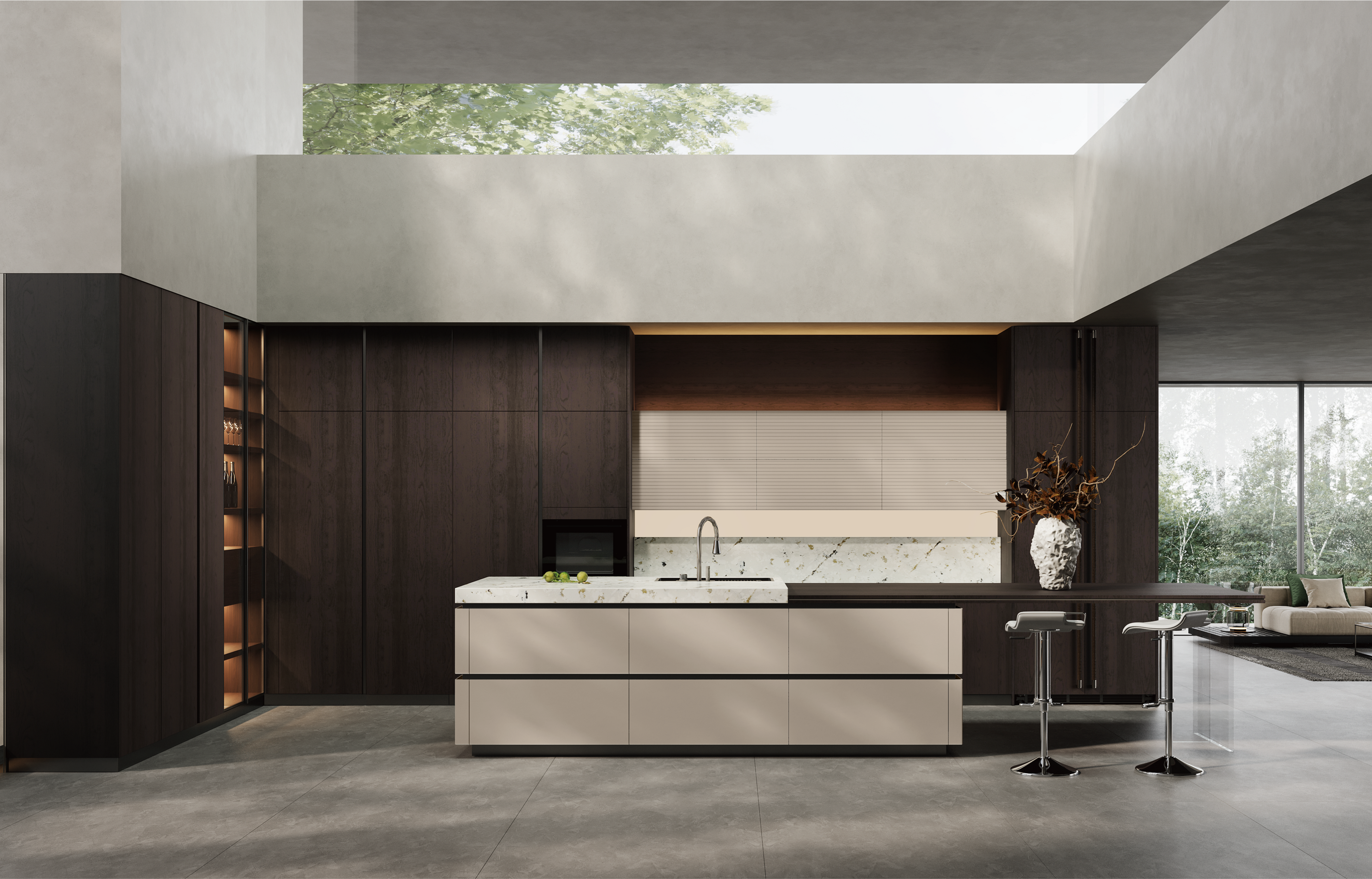 通过万利国际官网厨柜量体裁柜,定制出适合主厨下厨的烹饪区和洗涤区的舒适高度。